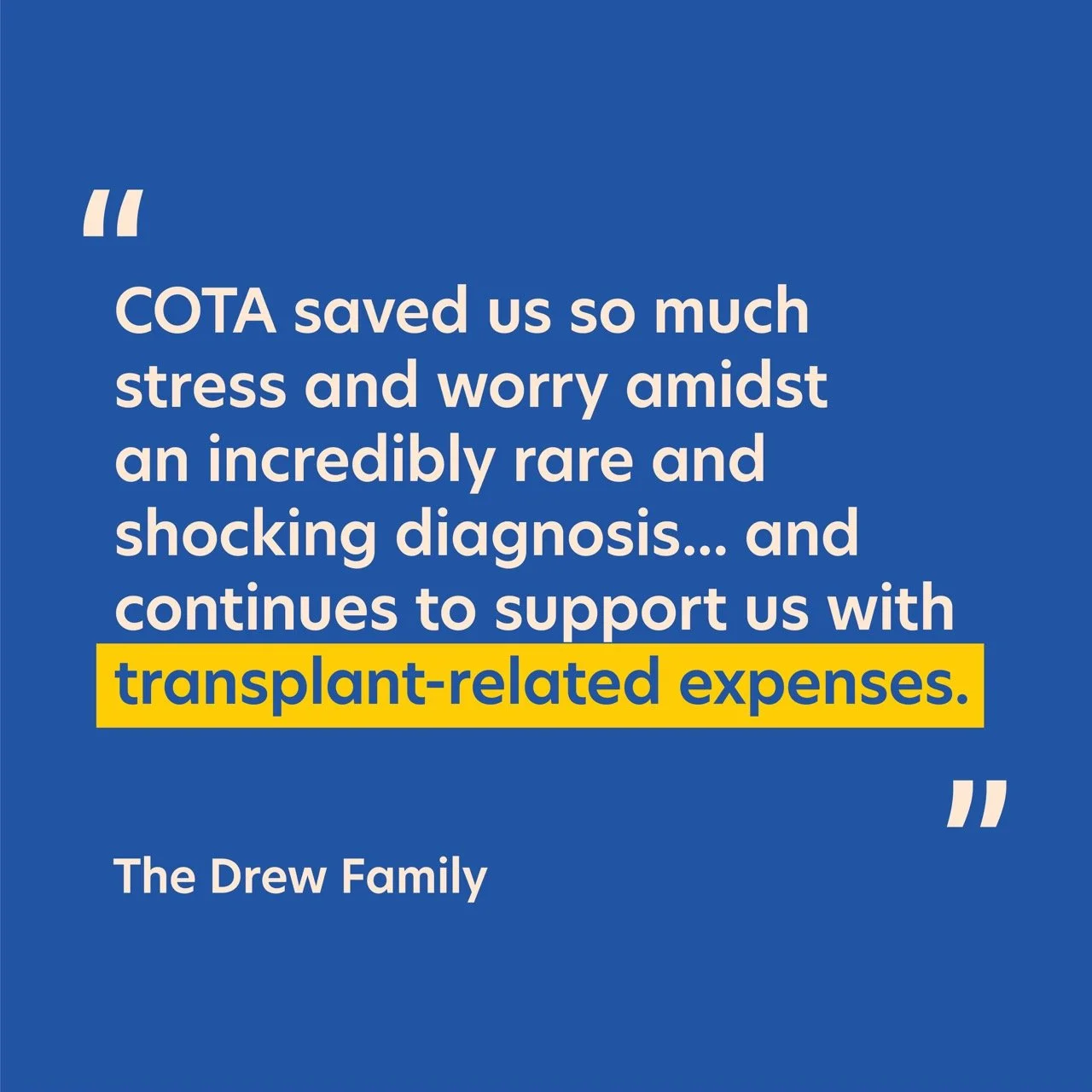 Since 1986, the Children’s Organ Transplant Association, or COTA, has assisted families of young transplant patients and is unified under the belief that no family of a child or young adult should bear the financial burden of a life-saving operation. With the combined efforts of members, the organization guides families and volunteers through every step of their organ transplant journeys.